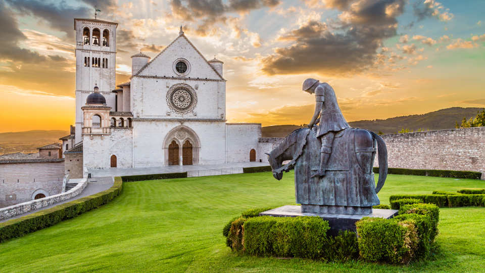 L’Umbria verde e silenziosa è la meta di un viaggio intenso che tocca luoghi dalla forte valenza religiosa come Assisi, con la basilica di San Francesco e quella di Santa Chiara.