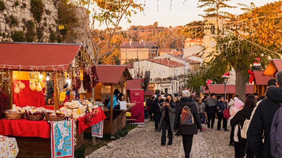 Una passeggiata tra storia e atmosfera. Si parte dal centro storico di Gesualdo e si sale verso il Castello, dimora del principe compositore Carlo Gesualdo. Dentro si attraversano sale, logge e terrazze con vista sull’Irpinia, tra racconti di musica, vicende di corte e leggende locali. L’itinerario continua tra vicoli in pietra e chiese affacciate sulle piazzette, fino ai mercatini: casette in legno, artigianato, profumo di caldarroste e prodotti tipici, luci e musica dal vivo. Tempo libero per assaggi e acquisti, poi rientro passando dai punti panoramici per le ultime foto. Tour semplice, adatto a tutti; consigliate scarpe comode e voglia di curiosare.