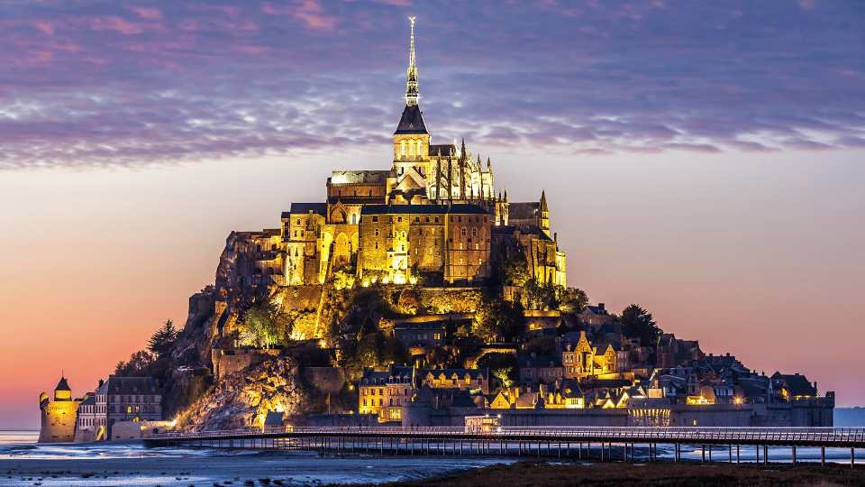 - Prima colazione. Partenza per il Mont Saint Michel complesso monastico costruito sopra un isolotto roccioso, considerato una delle sette meraviglie del mondo, dove intorno all’abbazia sorge un piccolo villaggio. La caratteristica dell’isolotto è che, grazie al fenomeno dell’alta, o della bassa marea può essere totalmente circondato dalle acque o da una immensa distesa di sabbia.